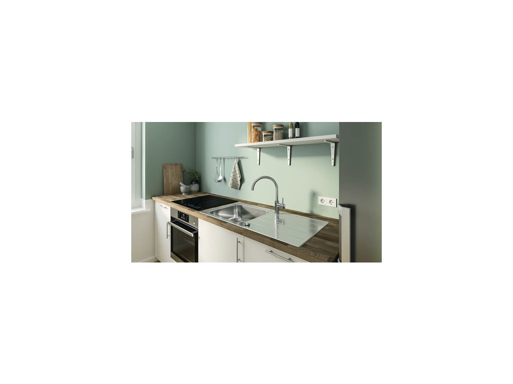 Jednopákové ovládání zajišťuje plynulou a přesnou regulaci teploty i proudu vody. Otočný výtok s rozsahem 360° poskytuje plnou volnost pohybu při práci u dřezu, což oceníte zejména v menších i více zatížených kuchyních. Perlátor vytváří jemný, rovnoměrný proud vody a přispívá k příjemnému používání.