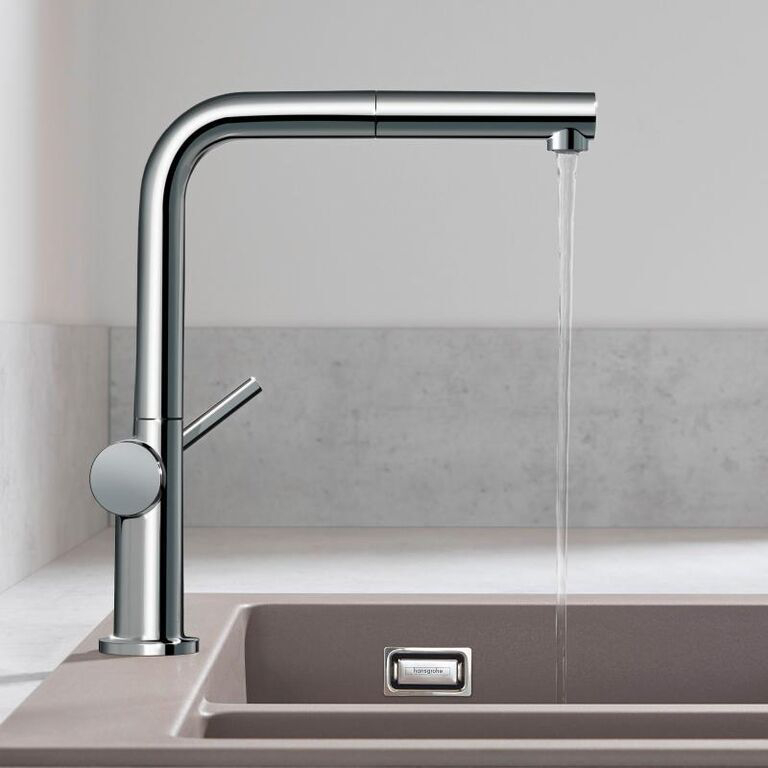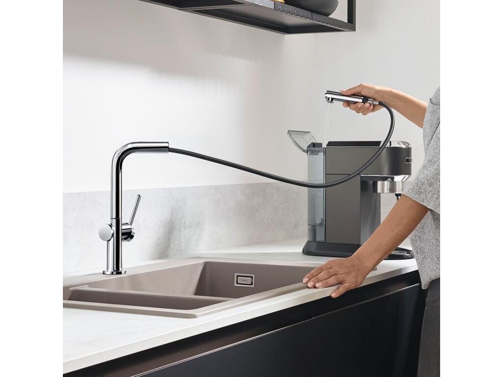 Dřezová baterie Hansgrohe Talis (72808000) / ComfortZone 270 / tvar L / chrom