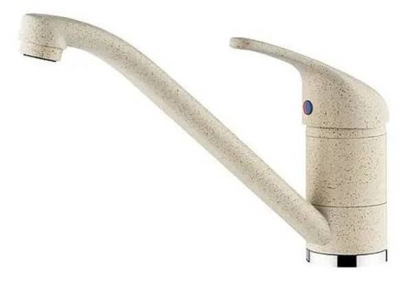 Baterie je vyrobena z odolné mosazi a opatřena ojíněným béžovým povrchem, který dodává kuchyni moderní, přirozený vzhled. Díky keramické kartuši se směšovací tryskou je provoz tichý, plynulý a spolehlivý. Provzdušňovač s omezovačem průtoku zároveň šetří vodu, aniž by snižoval komfort.