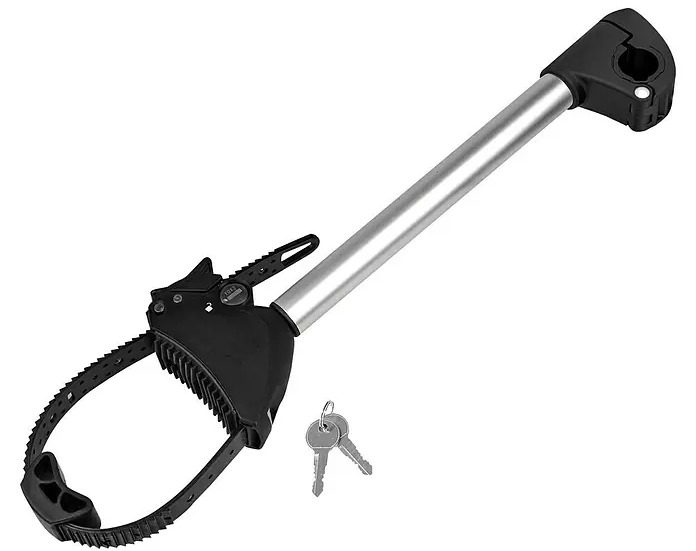 Držák má délku 32 cm, což poskytuje ideální dosah pro připevnění kola v různých pozicích. Díky univerzálnímu upínacímu systému je vhodný pro rámové trubky o průměru 3 až 10 cm, takže bez problémů sedí na většinu běžných typů kol – městských, trekingových, horských i elektrokol.