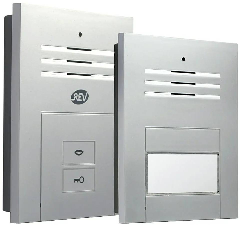 Dveřní interkom Rev Quattroline je hands-free hlasitý systém. Interkom má 2 vodiče pro hlas, zvonek i otvírač dveří. Ovládá se pomocí tlačítka pro mluvení a tlačítka pro otvírání dveří. Venkovní jednotku lze namontovat povrchovou montáží a je vhodná pro oblasti chráněné před povětrnostními vlivy. Má také osvětlený štítek na jméno a modré LED diody jako vizuální indikátor. Systém lze prodloužit až na cca. 70 m pomocí standardní zvonkové linky. Kromě 3 různých vyzváněcích tónů lze hlasitost vyzvánění individuálně nastavit. Interkom je vhodný pro 1-rodinný dům.