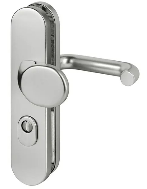 Bezpečnostní kování ES-1 je vhodné pro použití na vchodových dveřích o tloušťce 35 - 45 mm. Je vybaveno úchytkou na vnější straně a klikou na vnitřní straně a lze jej použít na pravých i levých zapuštěných i falcovaných dveřích. Ochranu zajišťuje 15 mm silný, povrchově kalený vnější plech s 2 mm silnými částečnými ocelovými vložkami. Plech je upevněn pomocí šroubových excentrů odolných proti odvrtání, které jsou přišroubovány třemi kalenými speciálními šrouby M 6, které jsou viditelné zevnitř pro vysokou ochranu proti odtržení. Toto bezpečnostní kování je navíc vybaveno pružně uloženým krytem válce s přesahem 12 - 17 mm. Bezpečnostní dveřní kování ES-1 má dlouhý krycí plech a kombinuje vysokou bezpečnost s snadnou instalací.