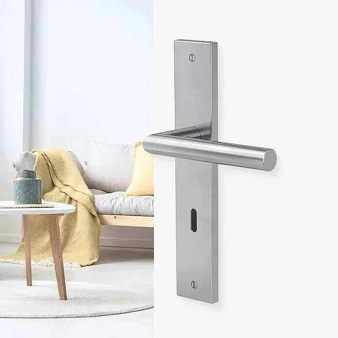 - Dveřní sada kování Diamond Doors / tvar L / 40 - 45 mm / Buntbart BB / nerezová ocel / stříbrná