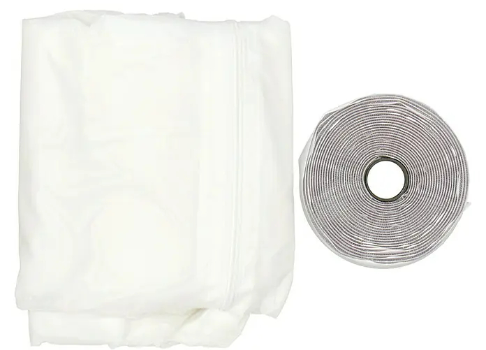 Těsnění je vyrobeno z odolného, UV-stabilního a vodoodpudivého polyesteru a instaluje se pomocí samolepicího suchého zipu – bez vrtání a bez poškození rámu. Díky všitému zipu lze snadno připojit odsávací hadici klimatizace a terasové dveře lze i nadále otevírat a zavírat zcela běžným způsobem.
