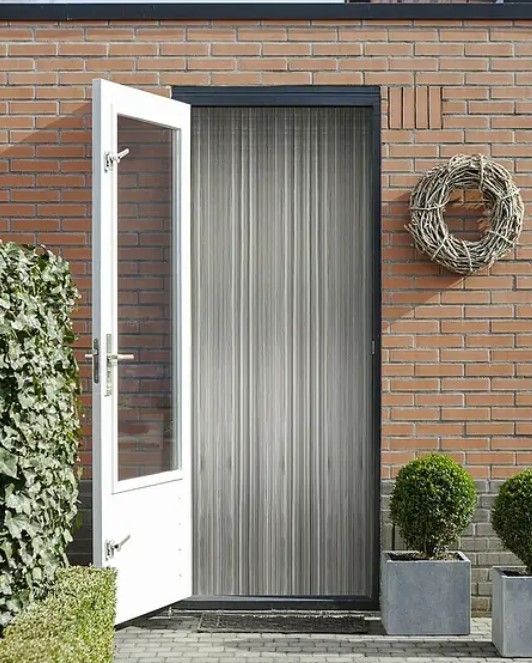 Průhledné prameny dveřního závěsu Saba umožňují nenápadný průchod světla a zároveň spolehlivě plní svou funkci dělicí stěny. Panel lze také snadno namontovat do dveří pomocí háčků.