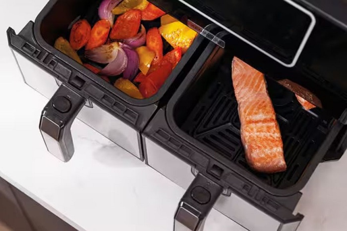 horkovzdušná fritéza • příkon 1700 W • 8 přednastavených programů • kapacita 8 l (dva koše po 4 l) • technologie Dual Zone pro vaření různých pokrmů současně • funkce Max Crisp pro křupavé pokrmy bez tuku • funkce protřepání • digitální dotykový displej • nepřilnavý povrch • lze mýt v myčce na nádobí • regulace teploty • časovač • barva černá ...