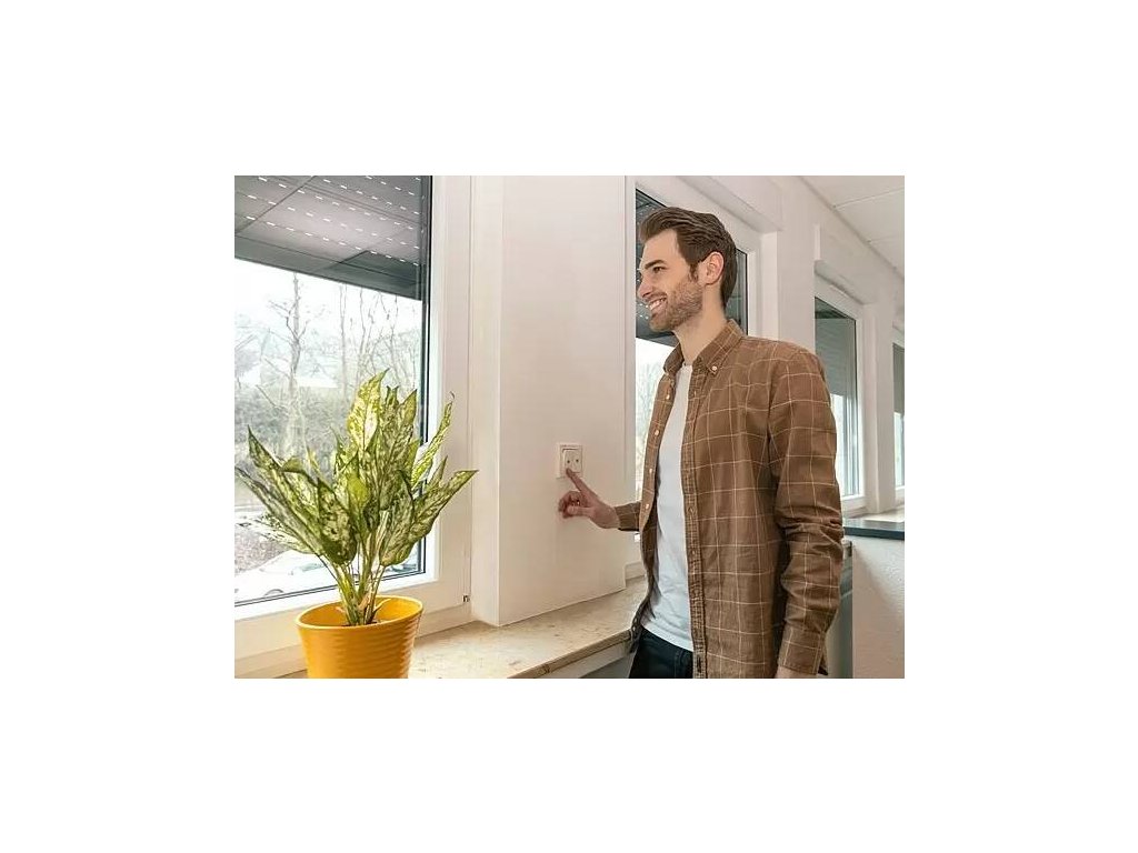S roletovým spínačem od společnosti Schellenberg lze roletu pohodlně zvedat a spouštět stisknutím tlačítka. Je to stejně jednoduché a intuitivní jako ovládání spínače světla, protože obě kolébky roletového spínače jsou označeny příslušnými funkčními symboly. Spínač rolet je vhodný pro elektrické rolety, které jsou poháněny trubkovým motorem. Vhodný výměnný rám je součástí dodávky. Instalace je zapuštěná. Stavební hloubka je cca 30 mm. Alternativně lze roletový spínač namontovat také na omítku pomocí volitelně dostupných přisazených rámů Schellenberg.