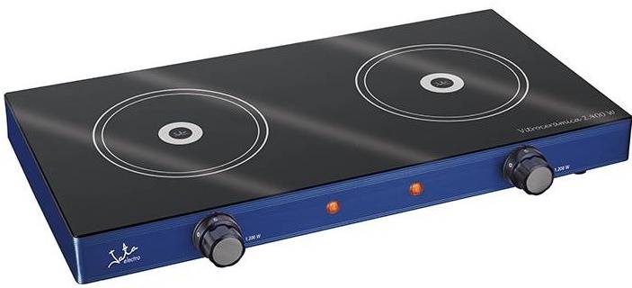 Dvouplotýnkový vařič JATA V142 / sklokeramika / O plotýnky 16,5 cm / 2400 W / 2 nastavitelné termostaty / nerez / modrá