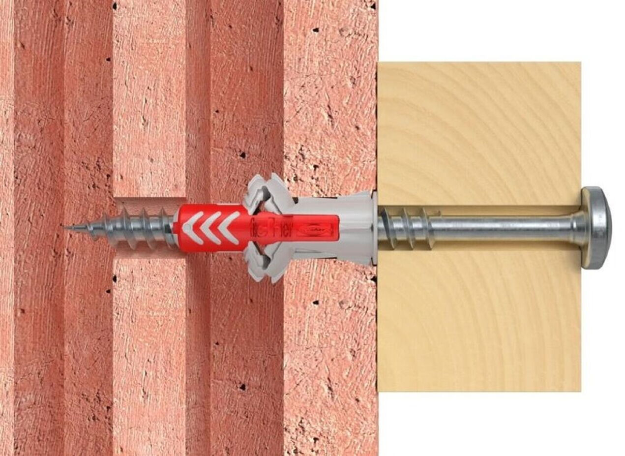 Hmoždinka Fischer DuoPower 10×80 mm je vysoce univerzální a výkonný kotevní prvek, ideální pro široké spektrum stavebních materiálů. Díky inovativní technologii kombinující dva materiály a tři funkční principy se automaticky přizpůsobí typu podkladu – zda se rozepře, složí nebo zauzluje. Tato adaptabilita zajišťuje optimální uchycení ve všech běžných stavebních materiálech, včetně betonu, plných cihel, pórobetonu a dutých tvárnic.
