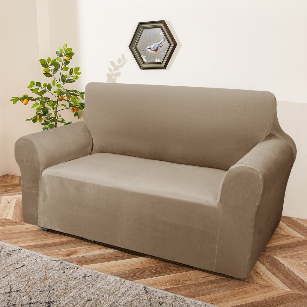 Elastický plyšový potah na dvoumístnou pohovku BestBerg / písková