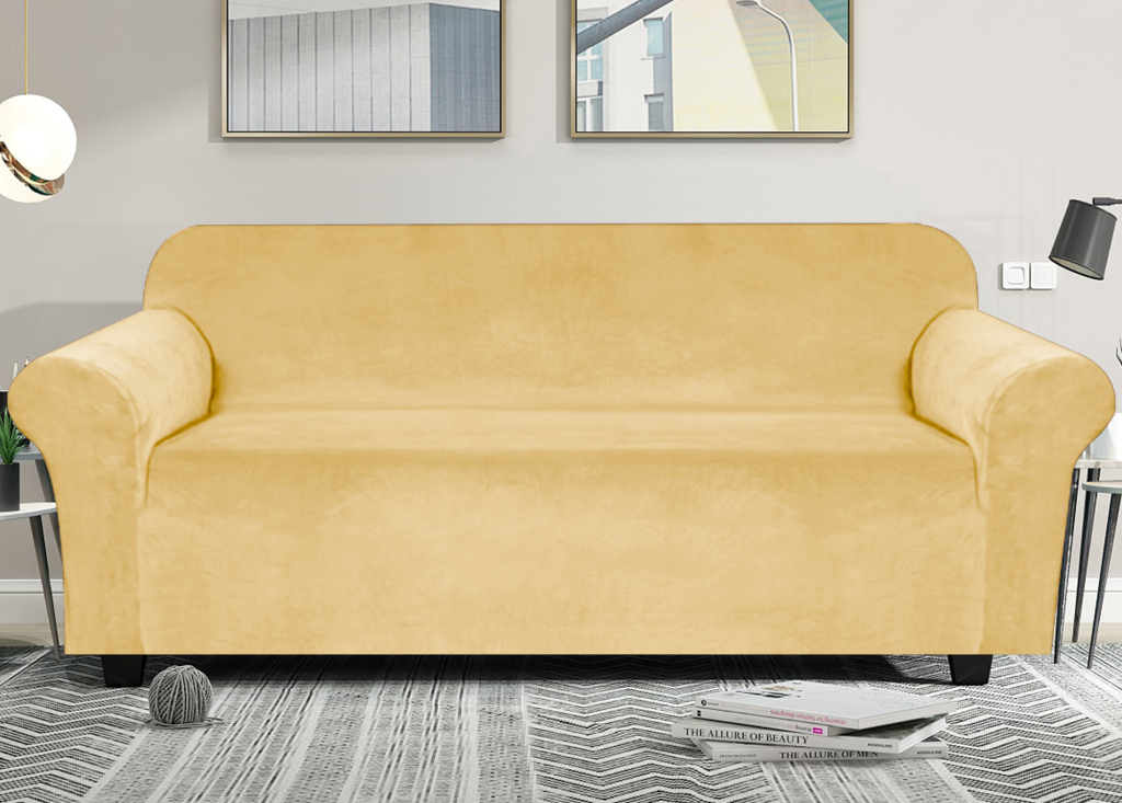 Elastický plyšový potah na dvoumístnou pohovku BestBerg / světle žlutá