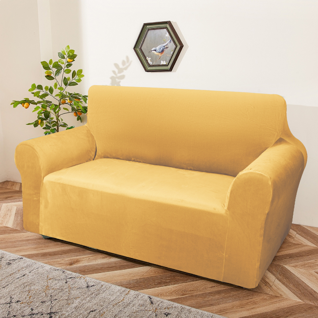 Elastický plyšový potah na dvoumístnou pohovku BestBerg / žlutá