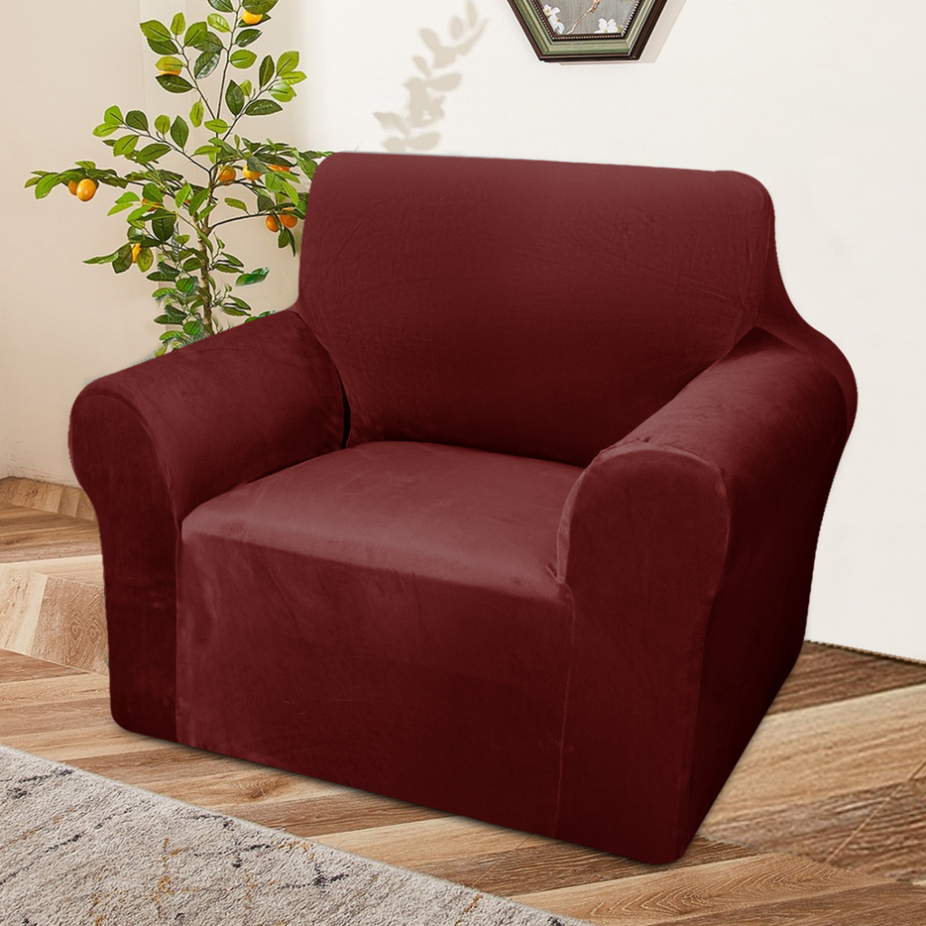 Elastický plyšový potah na křeslo BestBerg / vínová