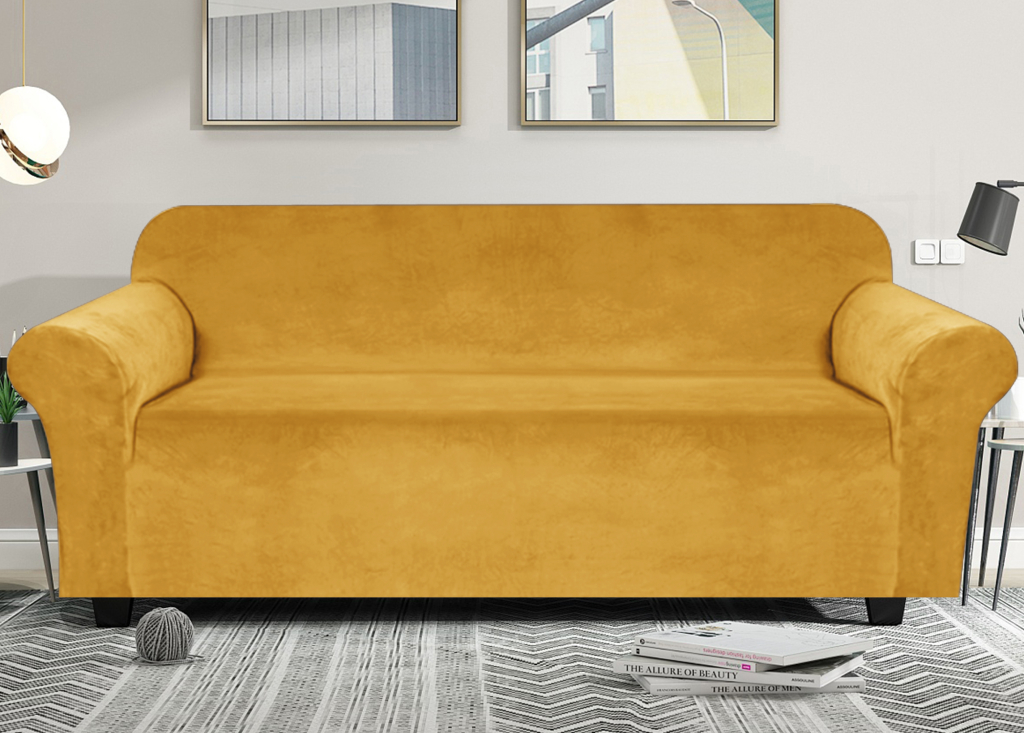 Elastický plyšový potah na trojmístnou pohovku BestBerg / žlutá