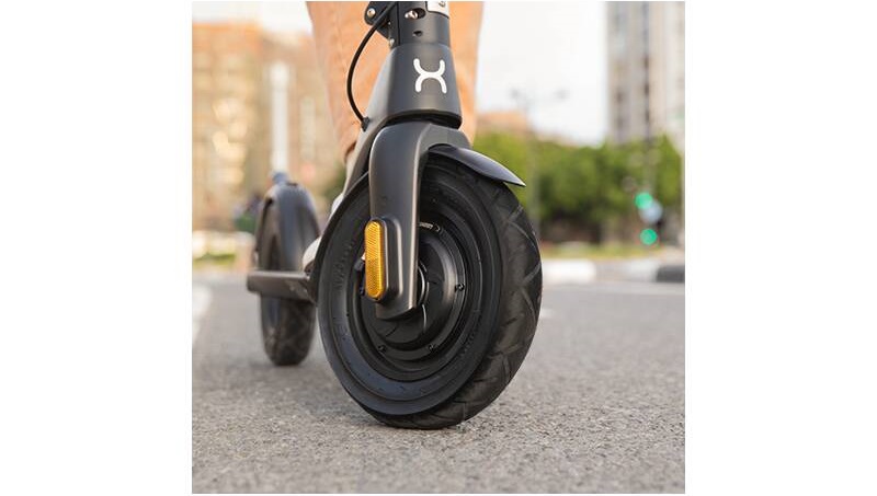 Elektrická koloběžka dostala vylepšené 10palcové bezdušové pneumatiky. Perfektně si poradí s každou nerovností a můžete být v klidu, neboť minimalizují riziko propíchnutí.