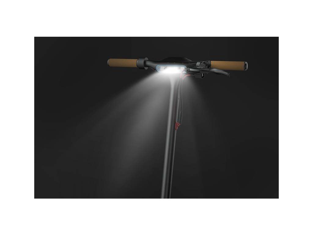 Přední světlomet má dosah až 5 metrů. V zadní části se pak nachází výstražné brzdové světlo. Vždy tak budete mít přehled o dění před sebou a zároveň budete dobře viditelní pro řidiče za vámi. Pokud chcete, můžete si navíc pořídit stylové osvětlení stupačky.