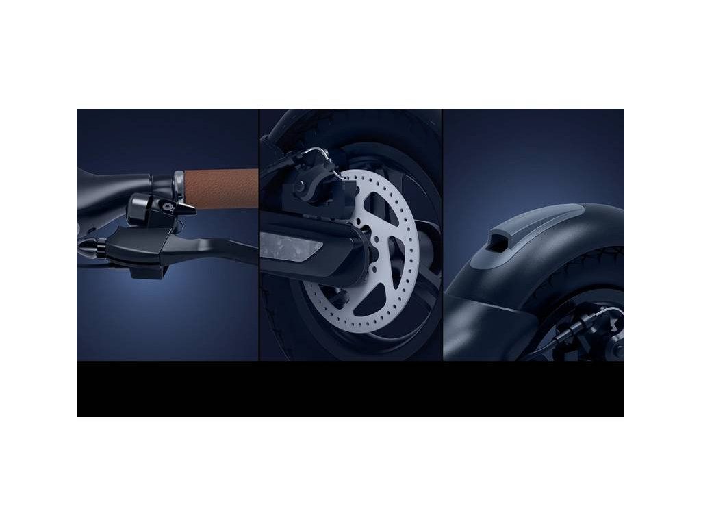 - Duální elektronický kotoučový brzdový systém (přední kolo elektrická brzda, zadní kotoučová brzda), přídavná nožní brzda