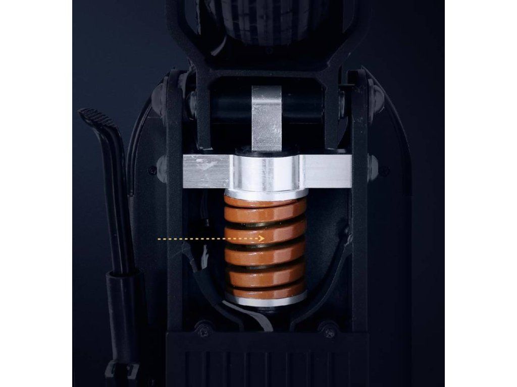 Na první pohled vás tento produkt zaujme svou konstrukcí v elegantní černé barvě. Zesílený rám je vyrobený z hliníku. V případě potřeby můžete koloběžku jednoduše složit, aby zabírala co nejméně místa a snáze se s ní manipulovalo. Hmotnost zařízení je 12,8 kg.