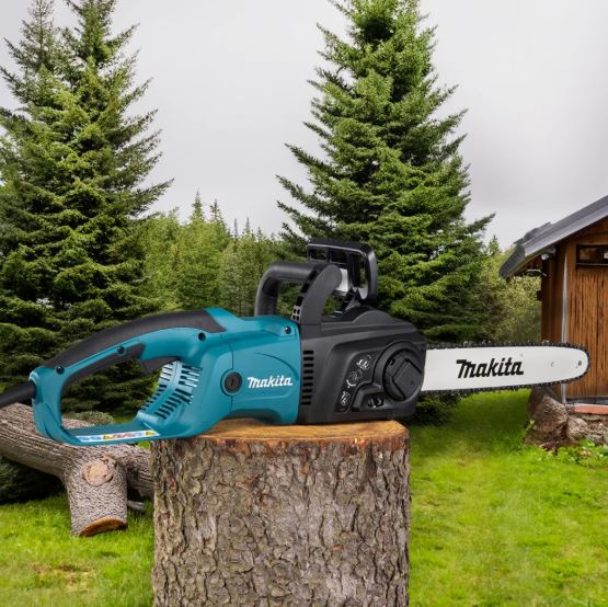 Elektrická řetězová pila Makita UC3551AK skvěle poslouží na zahradách, na chatách, chalupách a podobných místech, kde je čas od času třeba zpracovat větší množství palivového dřeva. Model o příkonu 2000 W je navržen tak, aby ho zvládl používat i laik – na většinu servisních úkonů tak nebudete potřebovat žádné speciální nástroje ani znalosti. Například výměna řetězu se obejde zcela bez nástrojů, což nebývá úplně běžné. Podobným způsobem je vyřešeno i napínání řetězu, při němž také nebudete potřebovat ani obyčejný šroubovák. Mazání řetězu olejem je pak automatické, nicméně máte možnost regulovat míru mazání dle aktuálních potřeb. Olej by nikdy neměl dojít, což se ale díky snadné možnosti kontroly hladiny pravděpodobně opravdu nestane, vždy totiž budete dostatečně včas vědět, že je třeba dolít novou dávku.