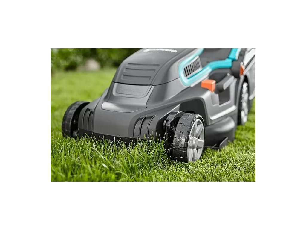 - Elektrická sekačka na trávu Gardena PowerMax 42 E / šířka záběru 42 cm / 1800 W / 45 l / 800 m2 / černá/tyrkysová