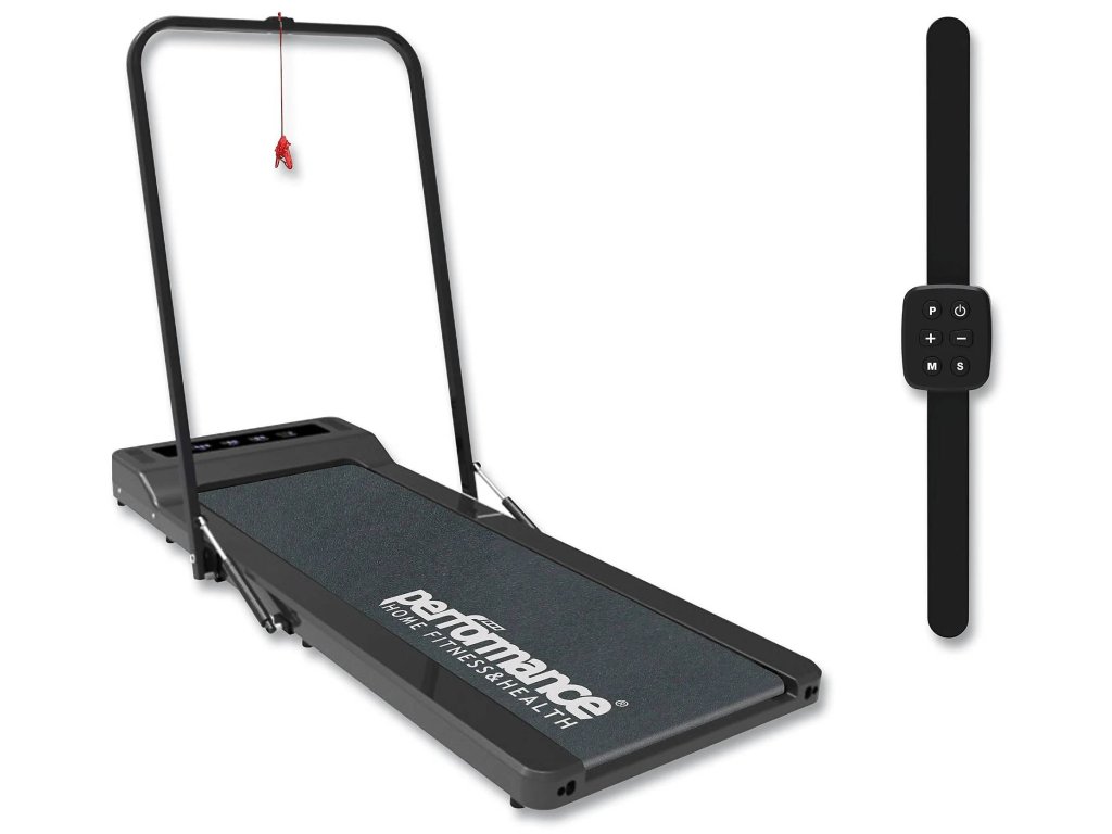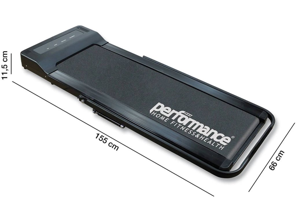 Ultrakompaktní elektrický běžecký pás Performance Slim nejnovější generace. Super malá velikost doplněná tenkým, skládacím a prostorově úsporným rámem. Se servopohonem zavírání řídítek. Vhodný výrobek pro ty, kteří mají problémy s prostorem, ale nechtějí se vzdát každodenního běhu, či procházky ani v chladných dnech. Po skončení tréninku pás uložit ve vodorovné poloze sklopením řídítek. Běžecký pás je postaven s ocelovou konstrukcí s motorem, který mu umožňuje dosáhnout rychlosti v rozmezí 1 - 8 km/hod. Multifunkční LED displej umožňuje sledovat čas, rychlost, vzdálenost či spálené kalorie. Pás má 6 přednastavených tréninkových programů, které vám umožní naplánovat si fyzickou aktivitu přesně dle vašich představ. Díky možnosti nastavit si cíle (čas, vzdálenost či spálené kalorie) si budete moci 100% přizpůsobit svůj tréninkový plán přesně na míru. Pás má 2 Bluetooth reproduktory pro přehrávání vaší oblíbené hudby během tréninku. Všechny funkce běžeckého pásu jsou spravovány pomocí chytrých hodinek, takže vše, co potřebujete k bezpečnému tréninku, máte současně na svém zápěstí. Vestavěná transportní kolečka umožňují snadnou manipulaci bez větší námahy.