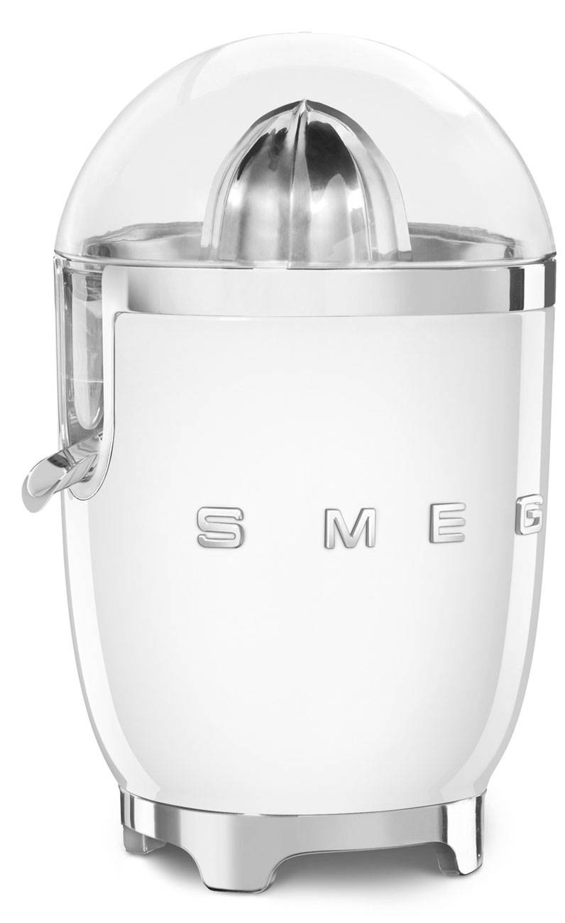 Elektrický lis na citrusy Smeg 50´s Retro Style CJF11WHEU v sobě spojuje design, spolehlivost i špičkový výkon. Lis na citrusy, který Vám zpříjemní pobyt v kuchyni a dopřeje potěšení ze sklenice čerstvé citrusové šťávy.