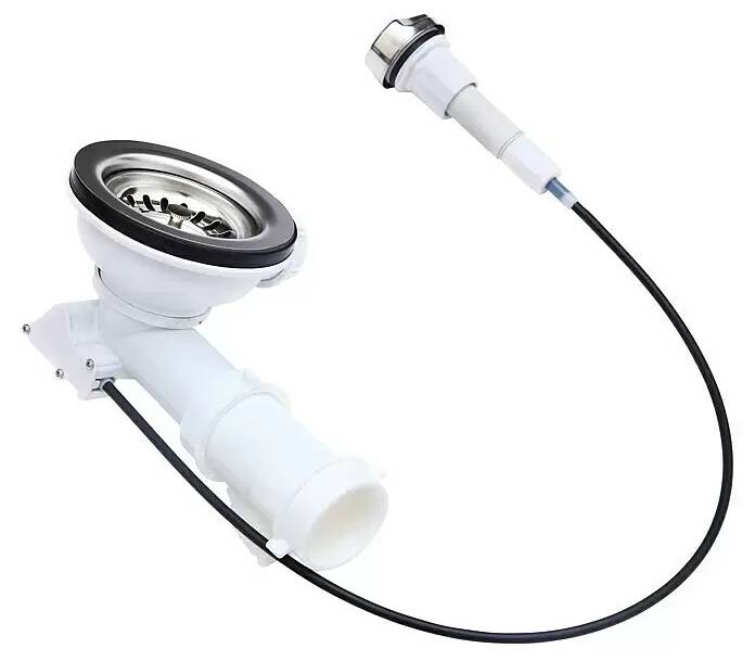 Excentrická odtoková armatura je vhodná pro použití se všemi dřezy s připojením 3 ½ palce. Zátka má sítko na vlasy. Sadu lze použít jako náhradu za stávající sítkový koš ve dřezu za dřezy na 1 misku, nebo za dřezy na 1,5 misky. Rychlým stisknutím tlačítka můžete sítko zavřít nebo otevřít, podle toho, zda chcete vodu sbírat ve dřezu nebo ji nechat protékat.