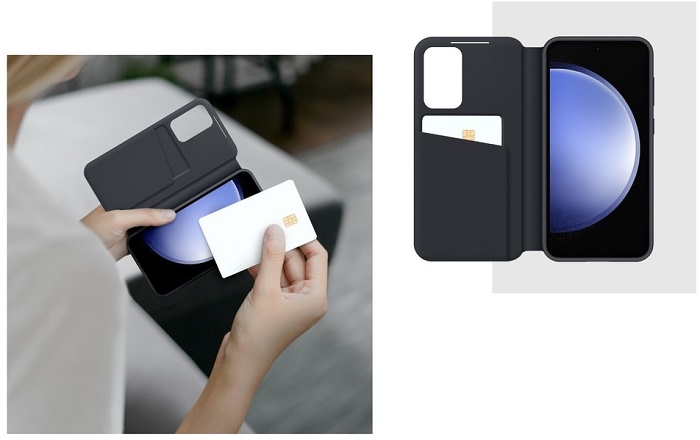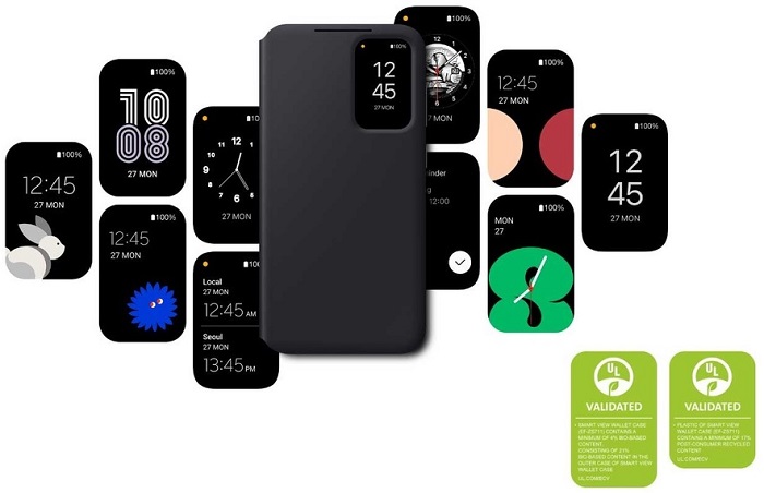 Specialitou pouzdra Samsung Smart View pro Samsung Galaxy S23 FE je rychlý a snadný přístup k často používaným funkcím (například přehrávání hudby, notifikacím atp.). Stačí totiž poklepat na okno displeje a základní prvky můžete ovládat i bez toho, aniž byste museli kryt odklopit.