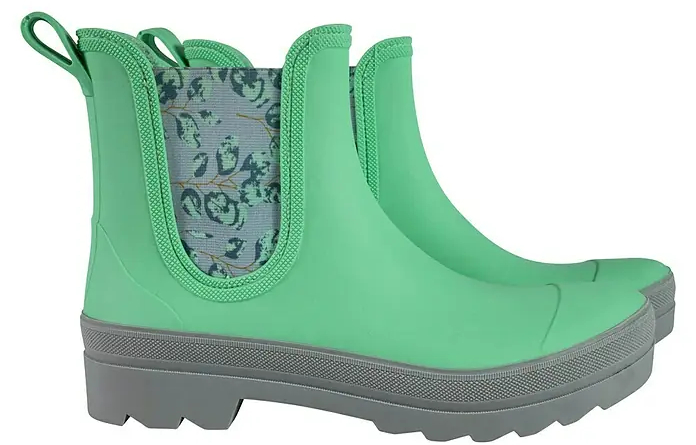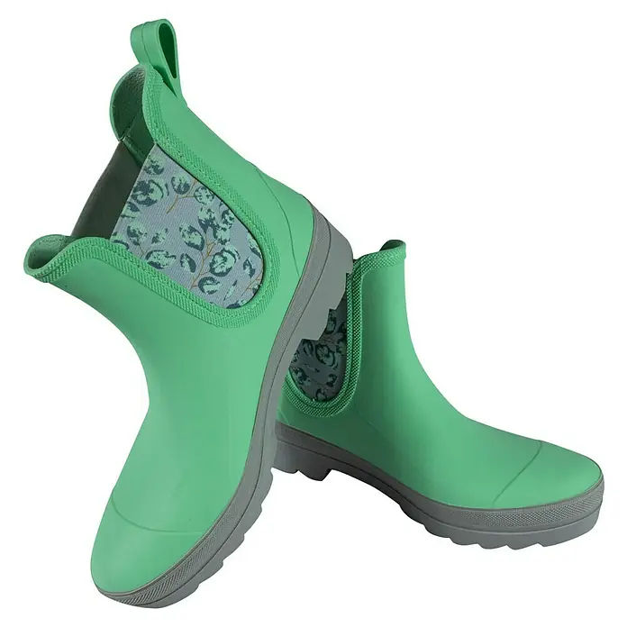 Představujeme lehké a flexibilní dámské gumové holínky, které kombinují módu i funkčnost. Elegantní design v barvě eukalyptus dodá vašemu looku svěží nádech i v nepříznivém počasí. Tyto holínky umožňují snadný skluz nohy díky elastickému otevření při nazouvání, čímž vám nabízí maximální pohodlí při každém kroku.