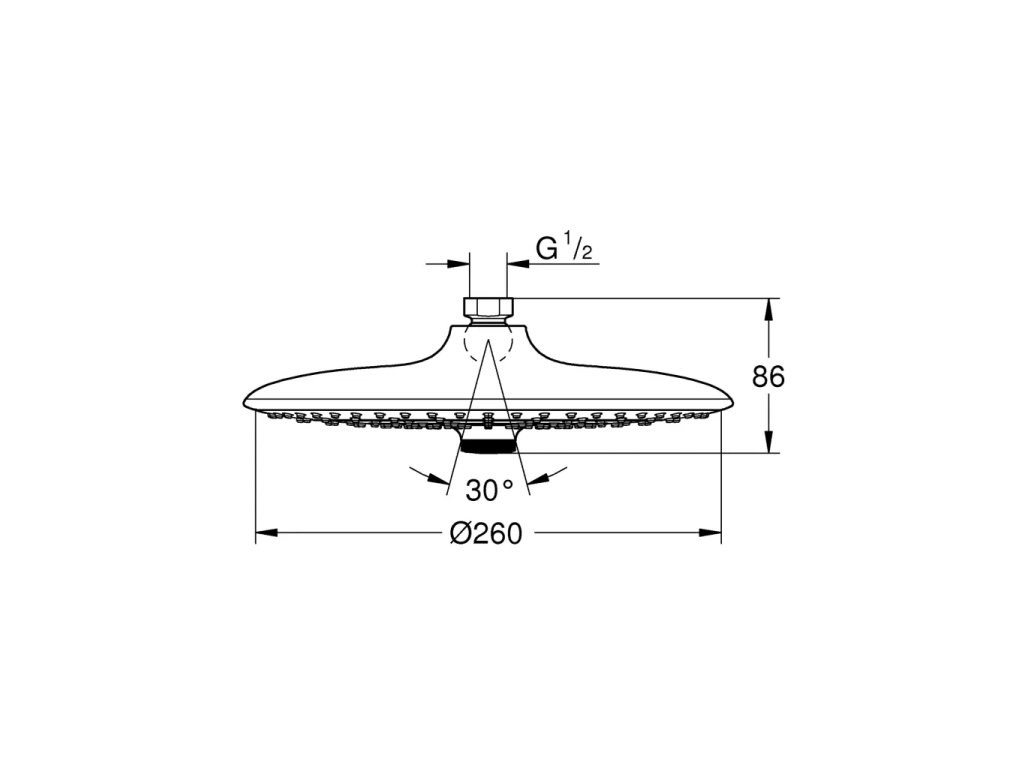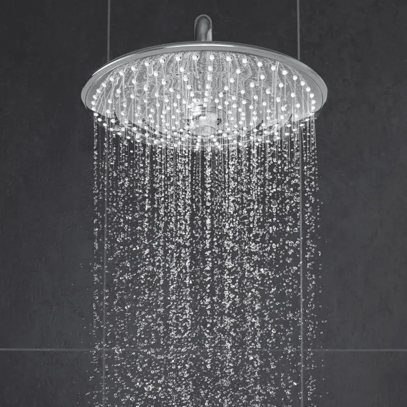 Tato elegantní hlavová sprcha značky GROHE z řady Euphoria 260 nabízí průměr 260 mm a umožňuje výběr ze tří charakteristických proudů: Rain (jemný, plně pokrývající proud), SmartRain (úsporný široký proud) a Jet (výkonný, masážní proud). Díky technologii GROHE DreamSpray je zajištěn rovnoměrný a intenzivní proud vody ze všech trysek.