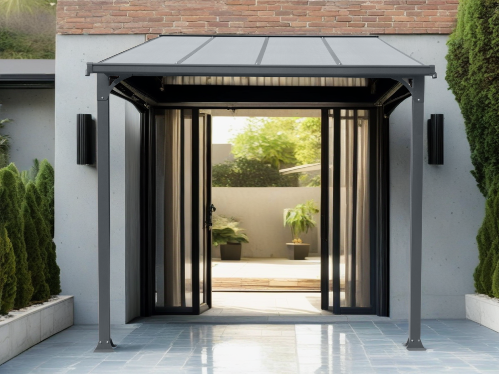 Moderní design s antracitovou práškovou barvou dodává vašemu domu elegantní a stylový vzhled. Tato pergola se snadno integruje do různých architektonických stylů a zvyšuje celkovou estetiku vašeho domova. Je to skvělý způsob, jak vylepšit první dojem, který váš dům zanechává. Díky ochraně před přímým vystavením povětrnostním vlivům výrazně prodlužuje životnost vašich dveří. Snížením opotřebení a poškození způsobeného deštěm, sněhem nebo sluncem, přístřešek pomáhá udržet vaše dveře v dobrém stavu po delší dobu.