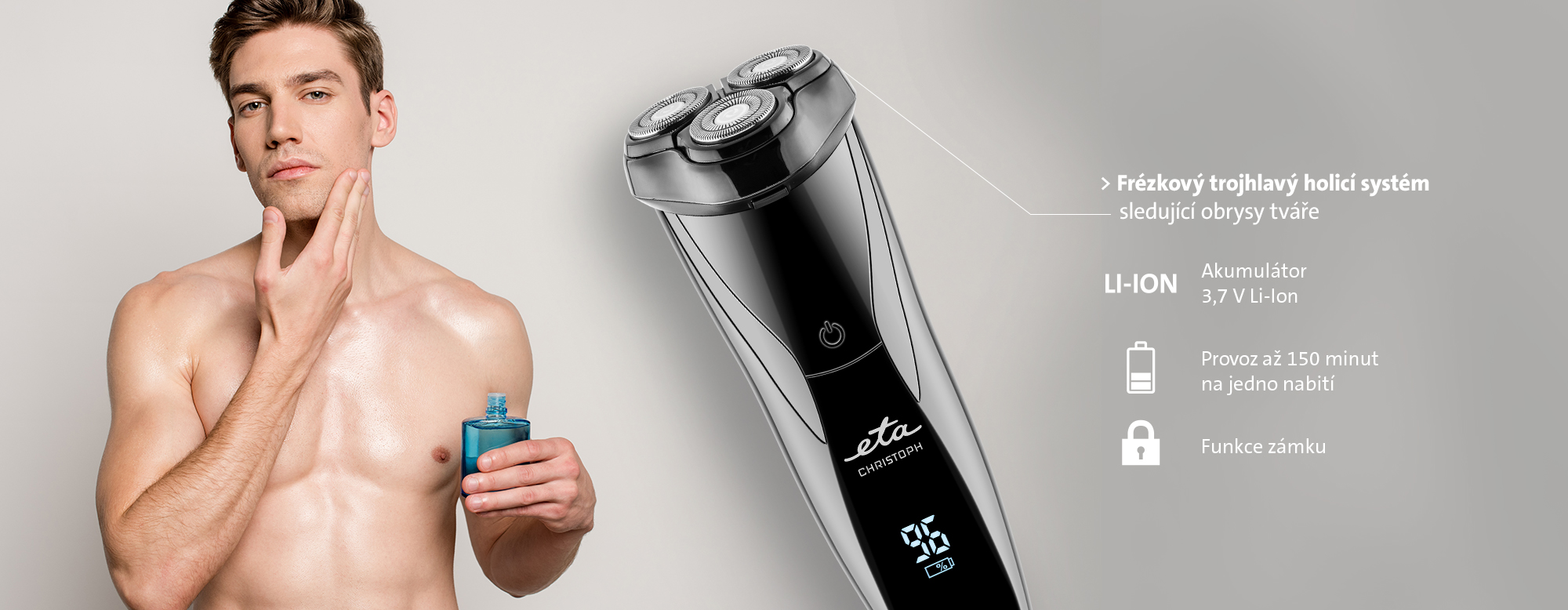 Frézkový holicí strojek ETA Christoph je spolehlivý parťák, který vám pomůže dosáhnout dokonale hladkého oholení ve všech částech obličeje. Je totiž opatřen frézkovým trojhlavým systémem, který kopíruje rysy tváře, včetně hůře dostupných míst a záhybů.