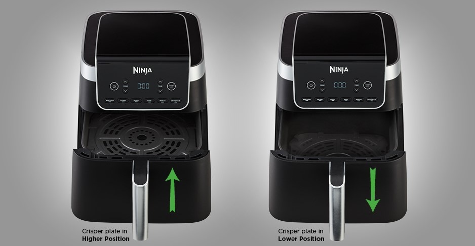 Součástí fritézy je nastavitelný tác Crisp Racker nabízející dvě možnosti, jak ho využít. Umístěním v horní části spotřebiče docílíte dozlatova usmažených menších kousků, zatímco spodní poloha slouží k rovnoměrnému vaření a dosáhnutí dokonale křupavého výsledku.