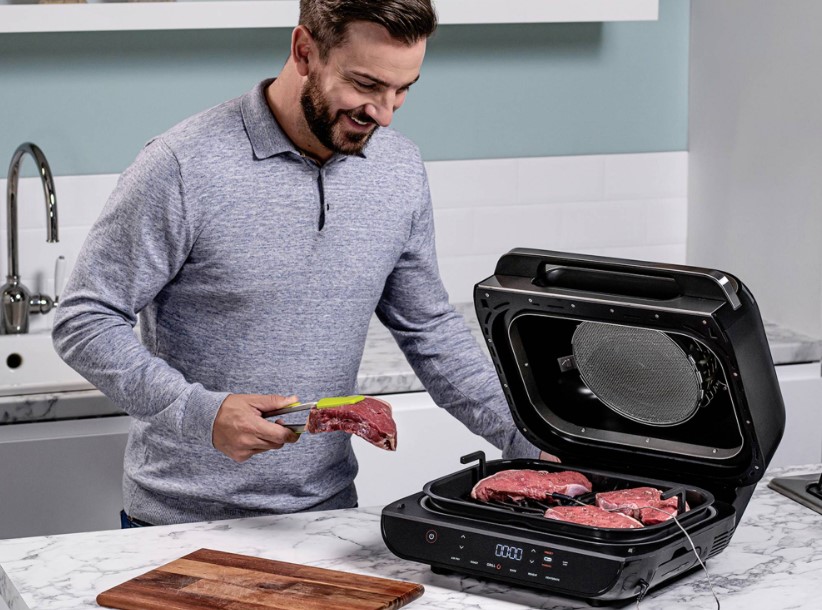 - Aroma dřevěného uhlí prostřednictvím grilovací desky Ninja
