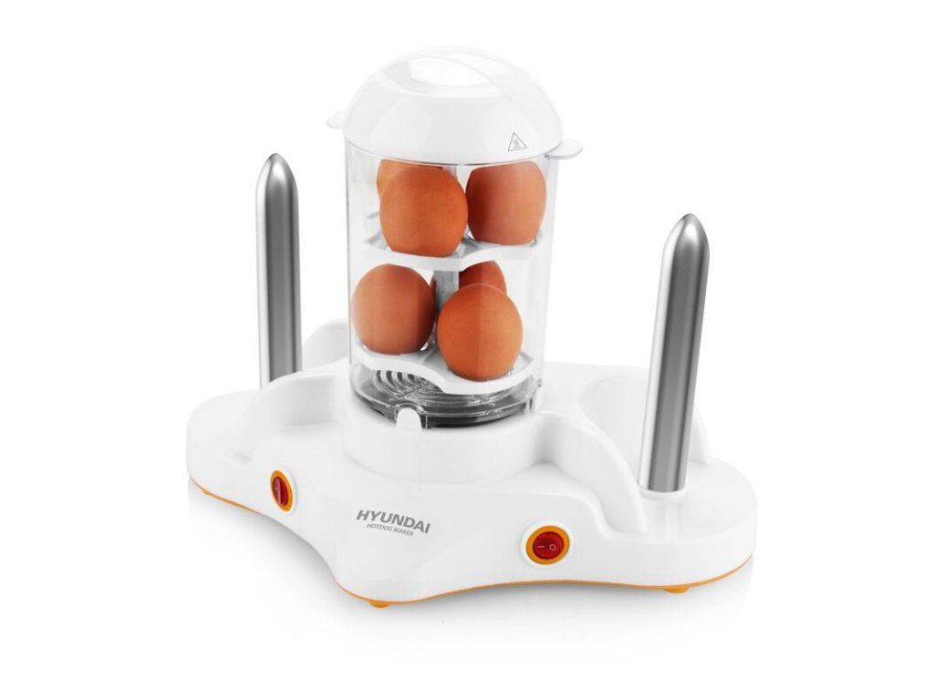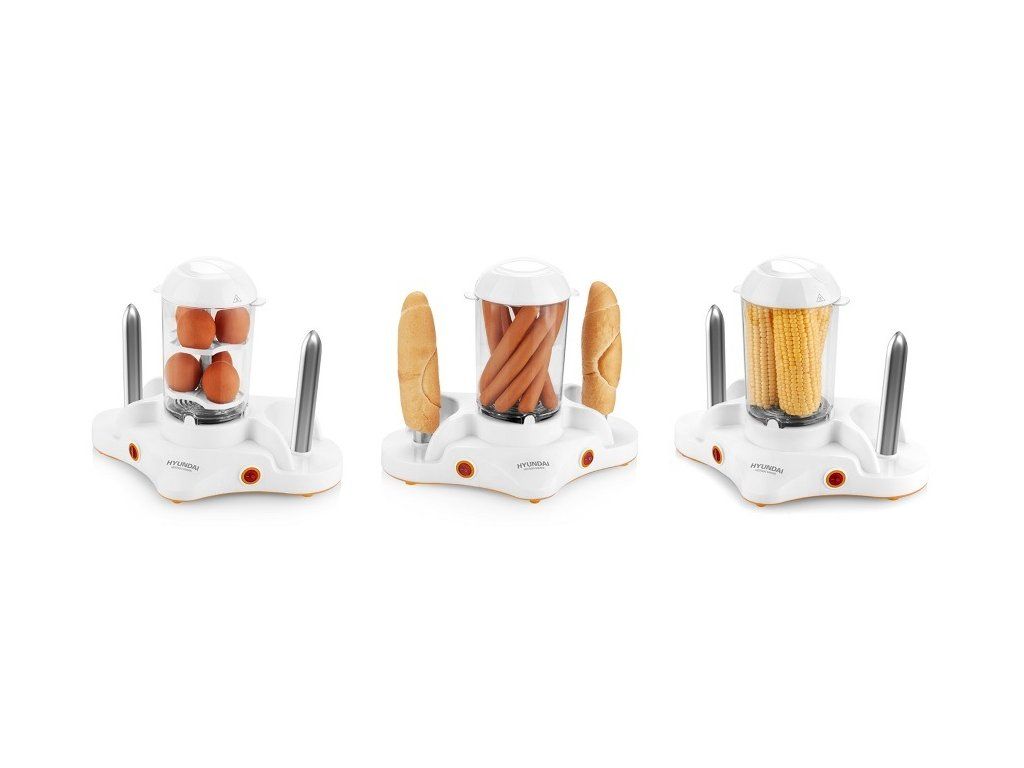 Přístroj Hyundai HDM 120 v sobě skrývá další netušené možnosti, které vás jistě potěší. Nejen párky, ale snadno uvaříte také vejce. Odnímatelný plastový nástavec umožňuje přípravu 1–6 vajec v jedné várce. Stejným způsobem můžete uvařit v páře také kukuřičný klas či jinou kořenovou zeleninu. Hot dog je vybaven podsvícením tlačítek, které signalizují provoz přístroje.