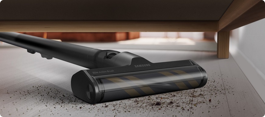 Užijte si dokonale čistou podlahu s hubicí Samsung VCA–SABA95. Absolutně měkký semišový kartáč s antistatickým stříbrem si poradí s nečistotou na tvrdém povrchu i ve štěrbinách. Nástavec Slim Action Brush je velmi lehký a tenký. Oceníte příjemnou manipulaci během úklidu.