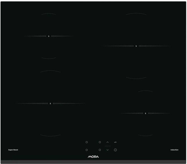 Indukční varná deska Mora VDI 61 FF přináší rychlé, úsporné a velmi bezpečné vaření do vaší kuchyně. Vestavný spotřebič se sklokeramickou deskou je opatřen přední zkosenou hranou a dosahuje rozměru 5,6 × 60 × 52 cm. Pohodlné vaření pokrmů probíhá na 4 varných zónách, dvě o průměru 210 mm a dvě o průměru 145 mm. Každá zóna má ve své výbavě funkci SuperBoost pro dosažení rychlého zahřátí díky extra výkonu. Ovládací panel v přední části nabízí dotykové ovládání s plynulou regulací výkonu u jednotlivých zón od 0 do 9 a signalizací funkce.