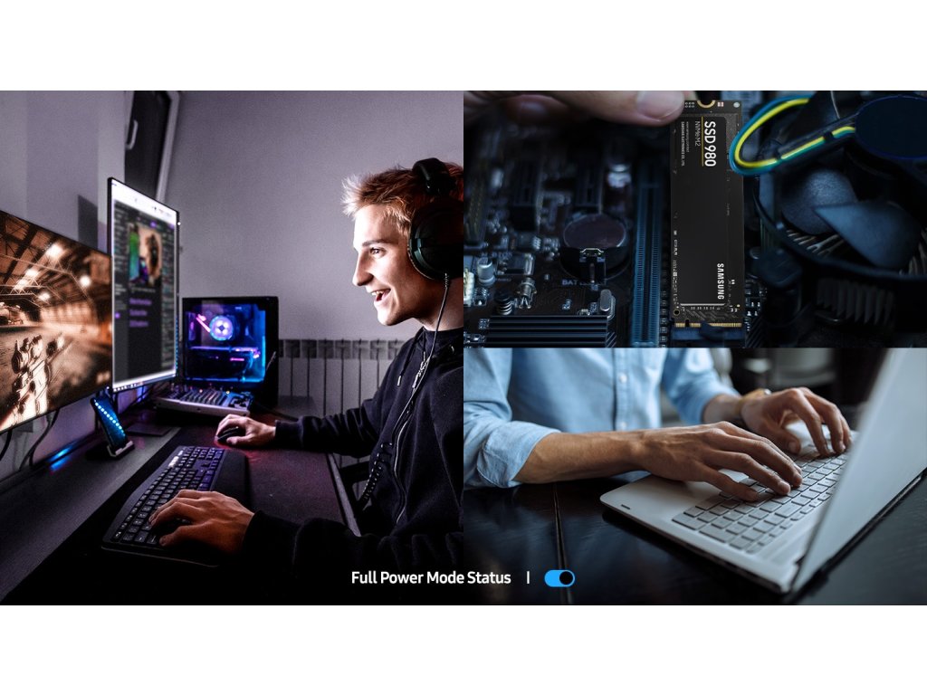 Rychlost a spolehlivost, to jsou přednosti interní SSD jednotky Samsung 980 NVMe M.2 s kapacitou 1 TB. Díky modernímu rozhraní NVMe s technologií PCIe dosahuje výkonu, který se vám bude hodit při hraní her a jiných činnostech náročných na grafiku. Sekvenční rychlost čtení dosahuje 3 500 MB/s, v případě zápisu je to 3 000 MB/s, což je více než šestinásobek rychlosti SSD s rozhraním SATA.