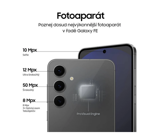 Galaxy S24 FE kombinuje výkon, inteligenci a praktické funkce v elegantním designu. Je připraven stát se vaším každodenním společníkem, ať už pracujete, cestujete nebo tvoříte – a nabídne vše, co od moderního smartphonu očekáváte.