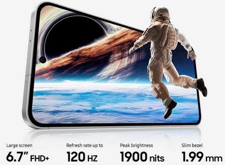 Nejnovější Galaxy S24 FE přináší vše, co jste si od vlajkové řady přáli. Vychutnejte si velký 6,7" Full HD+ Dynamic AMOLED 2X displej se 120Hz obnovovací frekvencí, který nabízí jasné barvy, perfektní čitelnost a hladký pohyb. Díky tenkým rámečkům a funkci Vision Booster je každý obraz ostrý a výrazný, ať už sledujete videa, hrajete hry nebo prohlížíte fotografie.
