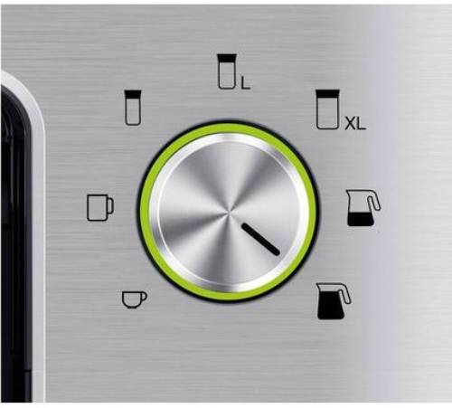 Kávovar nabízí možnost výběru ze 7 různých velikostí nápojů otočením knoflíku MultiServe. Kávovar dokáže připravit kávu v šálku, termoláhvi či konvičce (ta je připravena za méně než 8 minut).