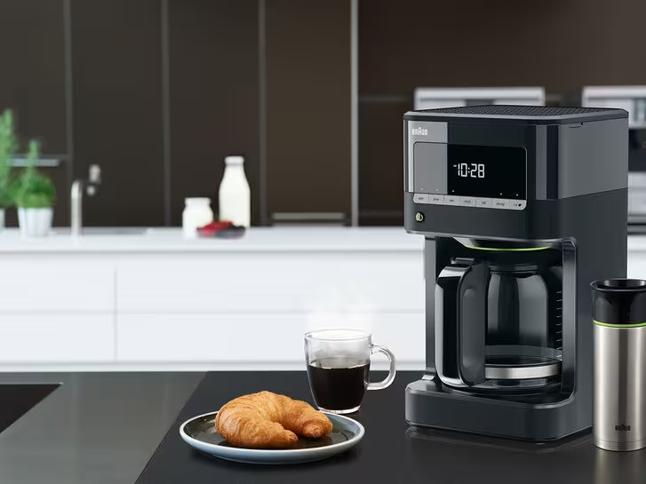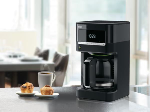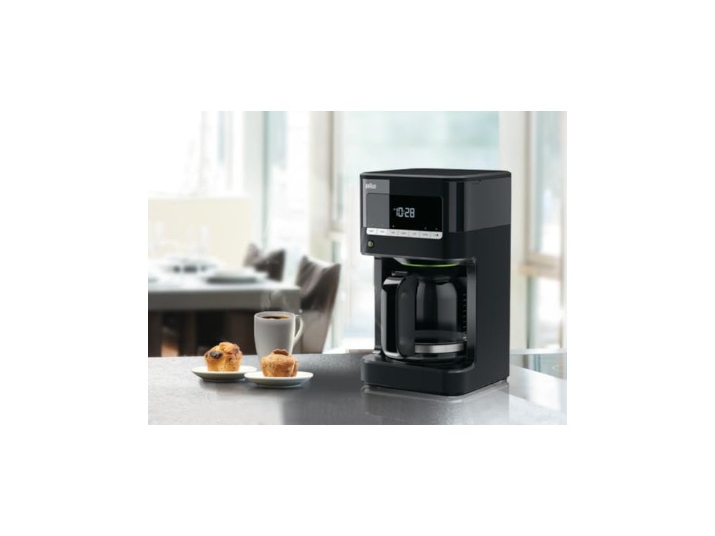 Kávovar na překapávanou kávu z řady PurAroma 7 od společnosti Braun zaujme zejména vysokou kvalitou připravované kávy a moderním designem, skvěle se hodícím do každé domácnosti. Přední straně dominuje velký LCD displej, na němž se zobrazují veškeré potřebné informace a parametry, pro jejichž nastavení slouží řada čitelně označených tlačítek umístěných pod displejem. Kromě běžných funkcí kávovaru jimi také ovládáte velmi praktický časovač, díky němuž si můžete předem nakonfigurovat spuštění vaření kávy až na 24 hodin dopředu. Můžete si tedy přístroj nastavit například tak, aby na vás čekala čerstvá káva po probuzení, nebo po návratu z práce.