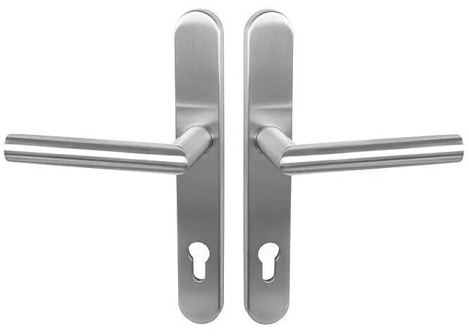 Klika ke dveřím je vhodná pro montáž předních a bočních vchodových dveří o hloubce 70 mm. Perforace této sady kování z kvalitní matné broušené nerezové oceli je určena pro profilové válce.