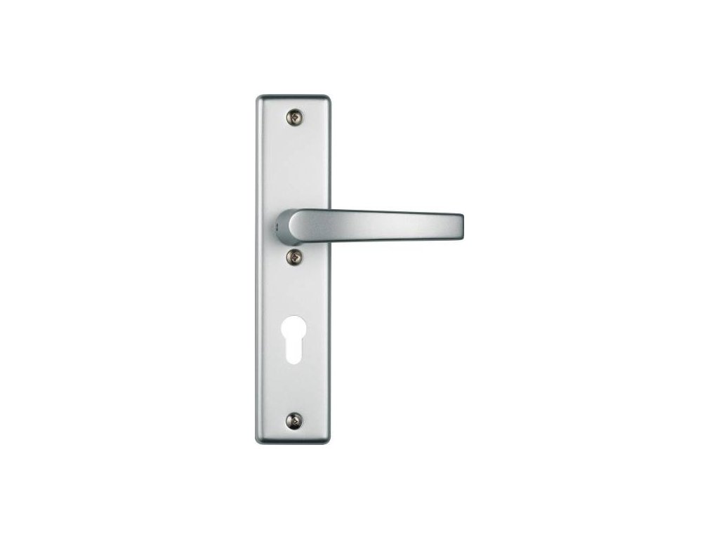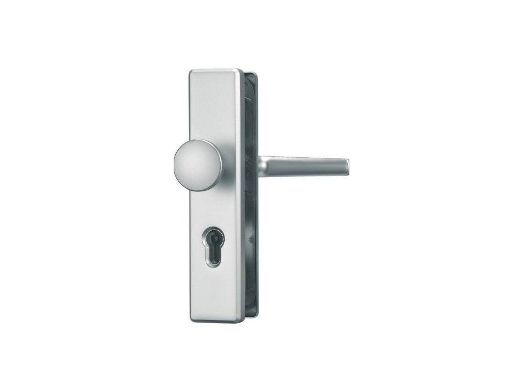 - Klika se zabezpečením na vchodové dveře Abus KLN314 F1 CL/DNFLI / vzdálenost 72 mm / čtvercový čep 8 mm / tloušťka štítu 15 mm / hliník / kov / stříbrná