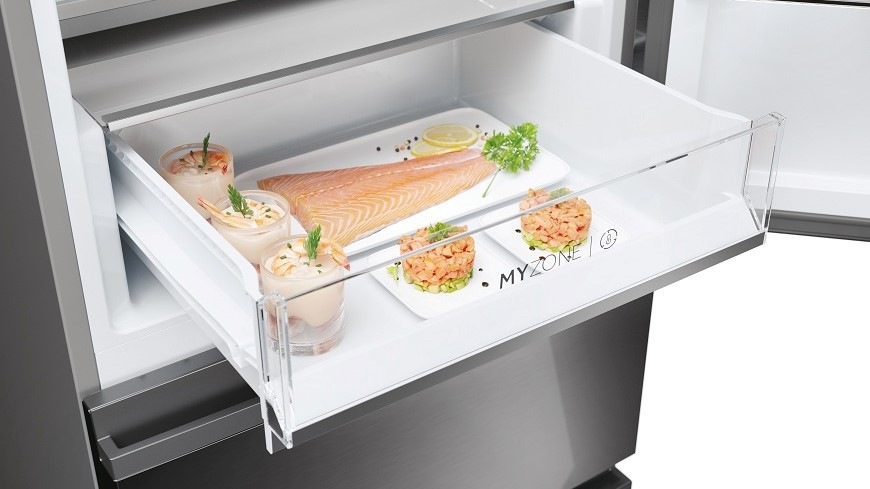 S přidanou funkcí My Zone můžete regulovat teplotu v zásuvce. Zásuvka je ideální pro maso, sýry, ryby nebo potraviny vyžadující individuální potřebu uskladnění. My Zone má celkem tři režimy: Fruit & Vegetable (ovoce a zelenina), Quick Cool (sýry + 2 °C), 0 ° Fresh (nulová zóna).