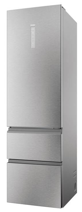 Jedinečná kombinace chladničky s mrazákem v šířce 60 cm, se 3 dveřmi. Haier HTW5620DNMG je dokonalá beznámrazová chladnička s mrazničkou, která nabízí netradiční design. Volně stojící chladnička Haier HTW5620DNMG v energetické třídě D nabízí XXL objem o kapacitě chladničky 289 l a mrazničky 125 l. Mezi přednosti této chladničky patři tichý a úsporný chod díky invertorovému kompresu. Prostor lednice je vybaven úsporným LED osvětlením, které poskytne nejen jasné a intenzivní světlo, ale je také odolné a úsporné. Chladnička má Wi-Fi připojení, takže ji můžete pomocí chytrého telefonu ovládat na dálku a využít řadu dalších chytrých funkcí.