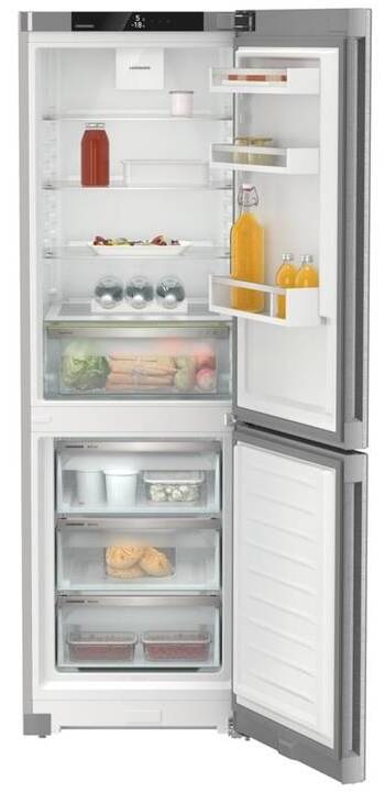 Kombinovaná chladnička s mrazákem dole, Liebherr Pure KGN 52Z03, nabízí dokonalé prostředí pro uložení potravin. Lednice je vysoká 185,5 cm a je zařazena do energetické třídy C. Disponuje objemem chladničky 227 l a mrazničky 103 l. K praktickému uložení jsou k dispozici 4 úložné prostory, 1 přihrádka EasyFresh a 3 dveřní odkladače v chladničce. Mraznička má 3 oddělené zásuvky a dosahuje mrazicího výkonu 10 kg/24 hod. Beznámrazová technologie No Frost spolehlivě brání tvorbě ledové krusty. EasyFresh přihrádka udrží ovoce a zeleninu déle čerstvé. Dva oddělené chladící okruhy DuoCooling brání vysušení potravin a šíření pachů.
