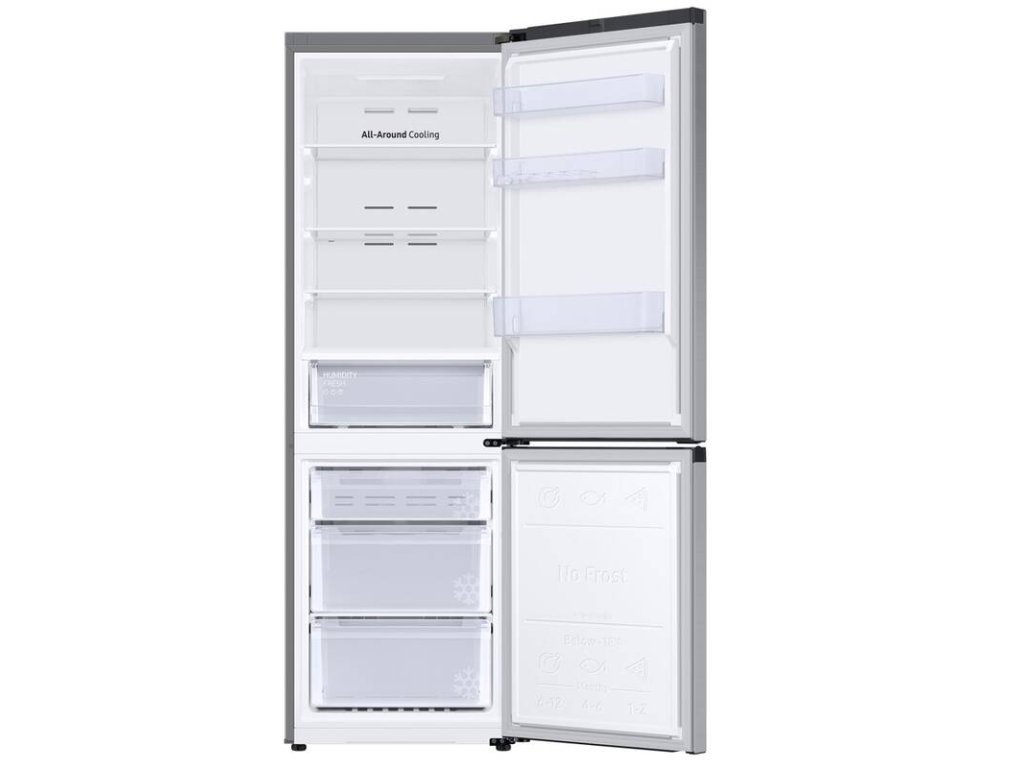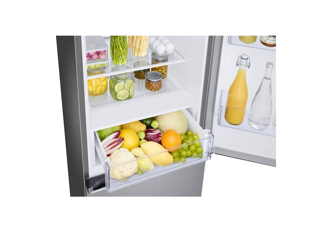 Kombinovaná chladnička Samsung RB34C600CSA/EF NoFrost je 185,3 cm vysoká a nabízí celkovou kapacitu 344 litrů. I přes její standardní hloubku 60 cm se můžete spolehnout na dostatek vnitřního prostoru pro uskladnění velkého množství potravin, díky technologii SpaceMax, která spočívá ve vysoce účinné izolaci a zeštíhlených vnitřních stěnách. S technologií True No Frost zapomenete na námrazu a o rovnoměrné chlazení v celém prostoru chladničky se postará funkce All-around Cooling. Chladnička je navíc velmi tichá, hlučnost dosahuje pouhých 35 dB. Za to vděčí především digitálnímu invertorovému kompresoru, na který navíc ani na úspornost se při návrhu chladničky Samsung RB34C600CSA/EF NoFrost nezapomnělo, díky důmyslné úsporné technologii můžete dosáhnout snížení spotřeby až o 15 %.
