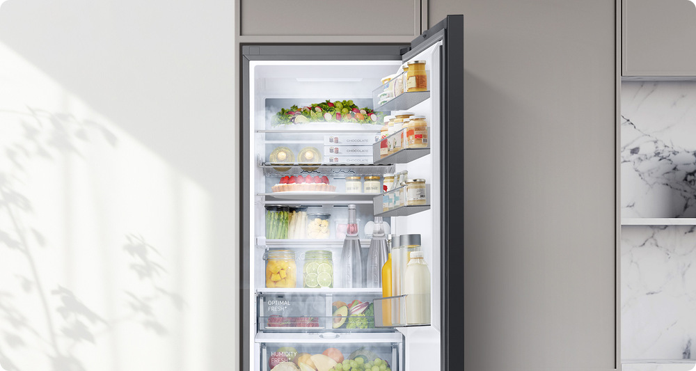 I vy se řídíte moudrými radami o správném rozmísťování potravin v chladničce? Efektivní organizace sice poskytuje dobrý přehled o vnitřním obsahu, ale nemusíte se striktně držet žádných přísných pravidel – chladnička Samsung totiž disponuje praktickou funkcí All-Around Cooling, která nejen, že monitoruje teplotu v jejím interiéru, ale rovněž se postará o rovnoměrné precizní chlazení na každé polici od jednoho rohu ke druhému. Systém důmyslně rozmístěných větracích průduchů zajišťuje maximální cirkulaci chladného vzduchu, takže o každou položku bude dostatečně postaráno tak, aby si potraviny zachovaly svou čerstvost a původní kvalitu.