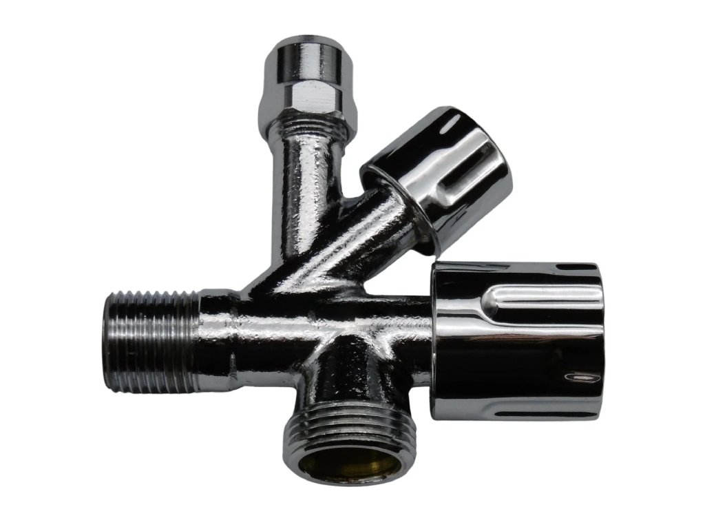 3/8" rohový ventil s přídavným 3/4" připojením zařízení, vám dává možnost připojení stroje navíc. Každé připojení lze uzamknout samostatně.